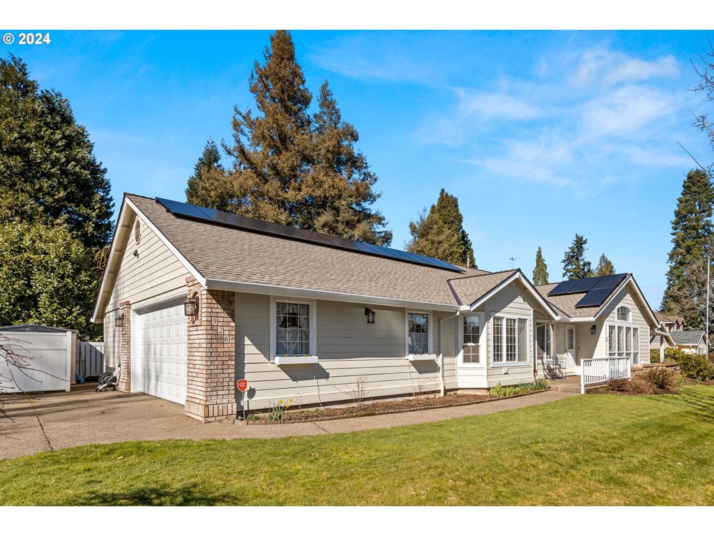Charming single-level home, boasting 2112 square feet of living space on a spacious lot, perfect for comfortable living and entertaining. The open concept great room seamlessly connects the living, dining, and kitchen areas, fostering an inviting atmosphere for relaxation and socializing. Recently updated features such as new flooring, fresh paint, and a cozy fireplace, along with vaulted ceilings enhance the homes inviting interior. The kitchen is a chef’s delight, showcasing granite countertops, a large island, stainless steel appliances, and ample cabinet space. The primary bedroom offers convenience with its ensuite bathroom and walk-in closet, while two additional bedrooms provide versatility for guests, children, or a home office. Enjoy the convenience of the spacious garage, complete with built-in storage and 240v charging for electric vehicles. An additional attached room serves as a perfect office or hobby space, complemented by an extra storage or a workbench area. Step outside to a covered patio and well-manicured backyard, offering a private oasis for outdoor relaxation and enjoyment. New solar panels provide substantial energy savings every month as energy rates in the area continue to increase. Ample driveway space is available for RV or boat parking. Nestled in a quiet and convenient Oregon City neighborhood near highly rated schools, parks, and amenities. Don’t miss the opportunity to make this incredible residence your home.