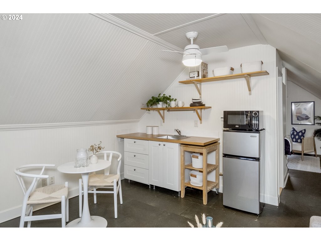 Sweet cottage in Overlook with commercial CM3 zoning. The main floor features hardwood floors throughout, high ceilings, wainscoting, and period light fixtures. Access the upper floor from the back exterior staircase. Upper floor with kitchenette, full bath, and bonus area. Perfect for work from home or ADU potential. Lower level with exterior access is clean and open for all your storage needs. Deep driveway for off-street parking. Expansive, flat, fenced and private backyard with raised beds and patio for gardening and entertaining. ZONED CM3, potential to add two ADU units or development opportunity. Development example is the apartment building across the street, address 1525 N Humboldt St. Buyer to do their own due-diligence and verify with the city. Amazing urban location in the sought after Overlook neighborhood. Blocks to the MAX station and Beach ES, walkable to shops and restaurants along N Alberta and the Williams/Mississippi corridor, plus easy freeway access. [Home Energy Score = 1. HES Report at rpt.greenbuildingregistry.com/hes/OR10234141]
