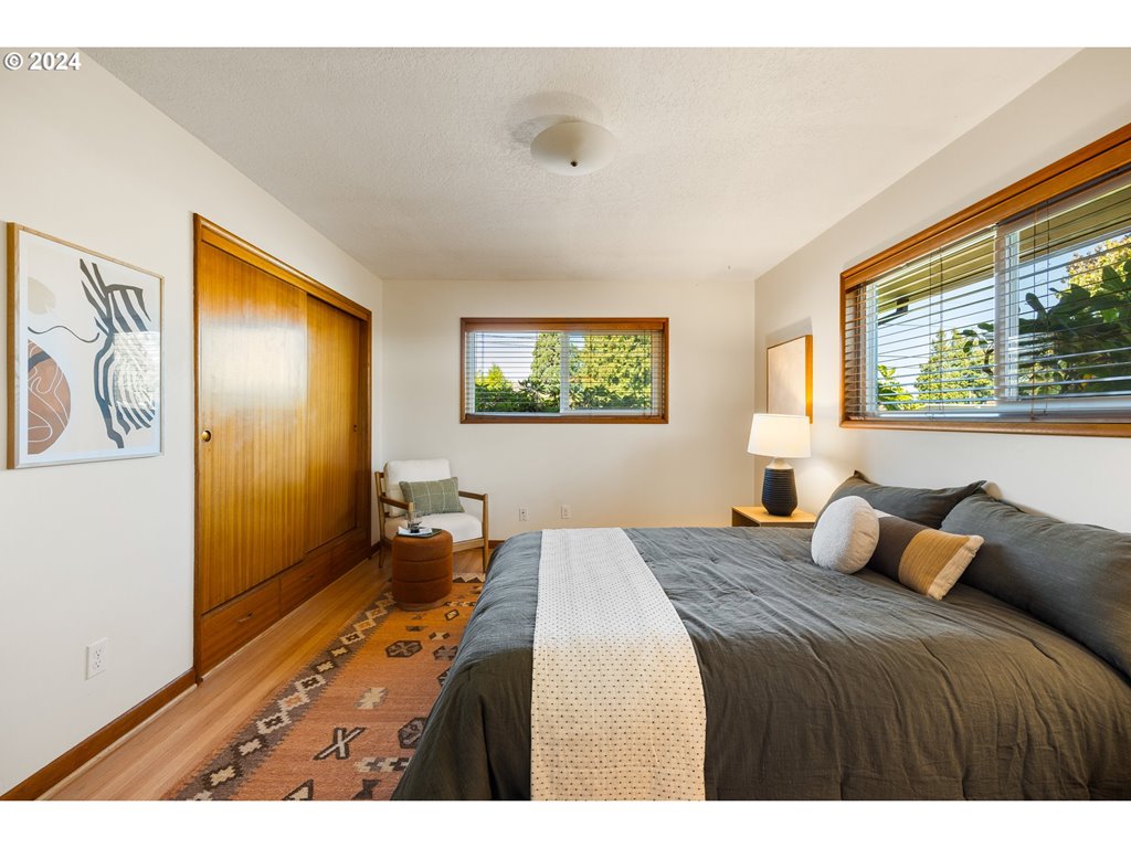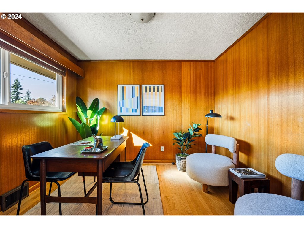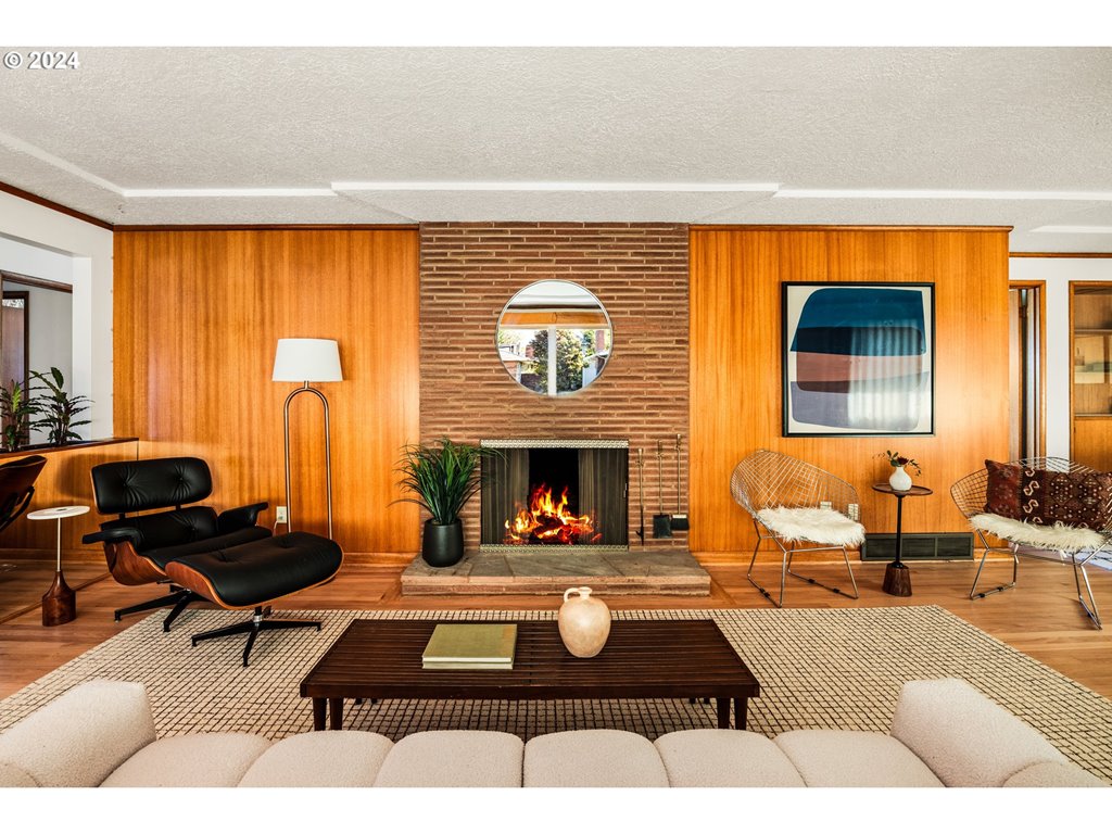1958 Van Laeken Addition Modern – Located just north of Concordia’s Fernhill Park is a quiet, little-known, 3-block enclave of post-war midcentury homes including this special gem. Most of the homes in the neighborhood were custom-designed and built by architect Perry Weber and builder L.E. Leitritz and included roman brick facades and cocktail bars in the basements. Situated on a generous .20 acre corner lot, this home has most of its original design details intact which create an amazingly rich, cozy and warm ambience and provide a daily dose of inspiration. These include extensive mahogany built-ins and casework throughout, hefty 50’s bullnose tile in the bathrooms, walls of windows with full drapes and mahogany cabinet valances, picture moulding, hardwood floors and other period design surprises throughout. The very livable floor plan has the formal living and dining rooms in front of the home and the kitchen, 2nd dining area, den and outdoor covered patio in back. With laundry on the main, the 3 bed, 3 bath home allows for spacious single level living. With a 2nd wood burning fireplace, full bath and a separate entrance from the back (or the 2 car garage), the lower level has ADU potential as well as room for more bedrooms or other possibilities in the future. Recent improvements include new exterior paint, hot water heater and refinished hardwoods in ’24, new heat pump in ’21 and polished concrete basement floors in 2020. The home is located just 3 homes away from Fernhill Park which offers an off-leash dog park, summer events, winter sledding, sports fields, tennis courts, running track, splash park, playground and much more. It’s also close to the U of O Concordia Campus, The Kennedy School, New Seasons Market, Oakshire Brew Pub, NEPO 42 – NE 30th, 42nd & Alberta Street Districts, Whitaker Ponds and more. And Concordia residents have the added bonus of soaking in The Kennedy School pool for free! [Home Energy Score = 2. HES Report at rpt.greenbuildingregistry.com/hes/OR10184136]