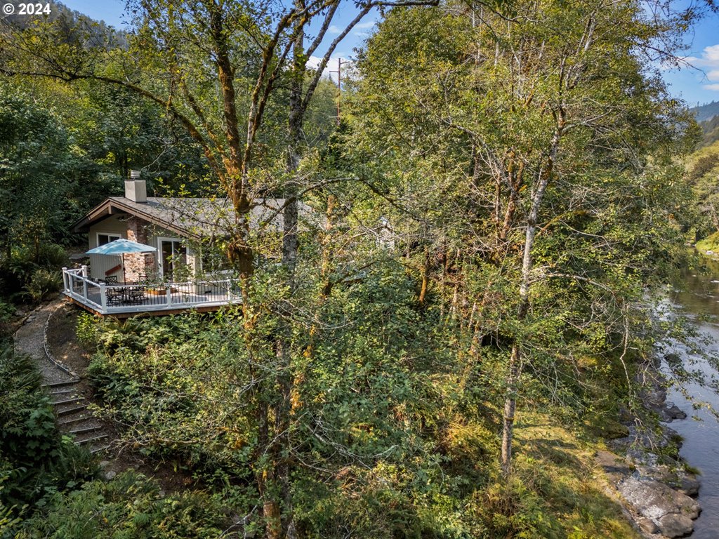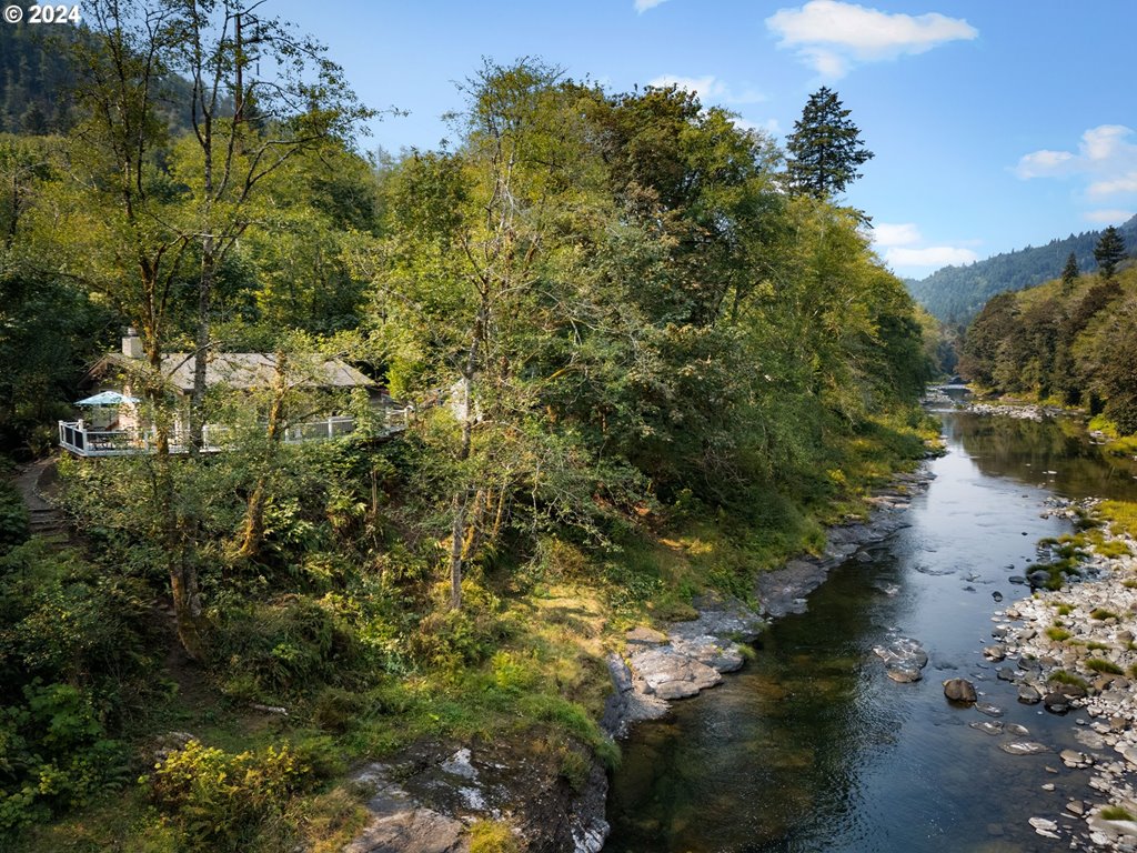 This architectural retreat is located in the “The Narrows”, a private gated community built in ’72 within the Tillamook State Forest and on the scenic and wild Wilson River, one of the Northwest’s premier steelhead, salmon and trout fishing destinations. The home is designed and sited to take full advantage of 180º panoramic east / west – up / down river views, the territorial forest views across, and the trophy cutthroat trout fishing hole directly below the home. The beamed and vaulted ceilings in the great room, wooden-clad ceilings throughout and wood burning fireplace add mid-century character and warmth to the forest retreat perched above the river. A generous wrap-around composite deck provides open river views around 3 sides, and in back of the home, garden beds room for summer veggies and plantings, and the storage sheds room for tools, toys, gear and firewood. A terraced trail winds down to the slab stone river bank which creates a natural patio for your adirondack chairs and river-fun base station. An extra half-lot provides room for a boat and extra parking. The private community has primarily part-time vacation home residents. The community lane, with security gate, keeps the neighborhood private and secure. At only 55 miles to Portland, you can escape the city on a whim and start unwinding at your river home within an hour. Hiking, foraging, fishing, hunting, crabbing, J Andy Oyster, Pelican Brew Pub, DeGarde Brewing, the Tillamook Cheese Factory and Flight Museum, and all the fun of the beach, Netarts Bay and Oceanside have to offer are only a short drive away!