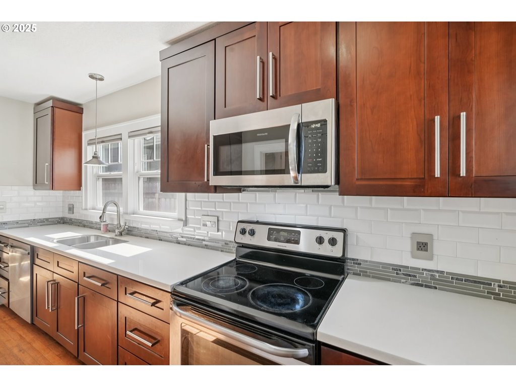 Charming, Move-In Ready Bungalow in a Prime Central Location with secure off street parking! This inviting home blends classic character with thoughtful updates, featuring hardwood floors, original millwork, custom lighting, and large windows that flood the space with natural light. The remodeled kitchen offers quartz countertops, stainless steel appliances, and ample storage. The main floor includes two comfortable bedrooms and a bathroom with a fully tiled shower. The finished attic adds flexible living space, perfect as a third bedroom, office, or bonus room. The basement provides generous storage, and recent updates include a new roof for added peace of mind. Enjoy the fully fenced, landscaped yard with a paver patio, ideal for relaxing or entertaining. A private gate leads to the alley, offering secure off-street parking when needed. Close to New Seasons, restaurants, shopping, and the vibrant Mississippi District, with quick access to transit and freeways. With a Bike Score of 92, it’s easy to get around without a car. Don’t miss the chance to make it yours!