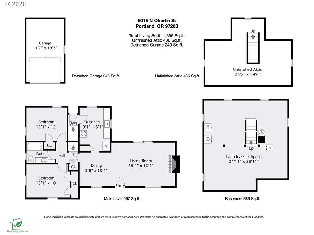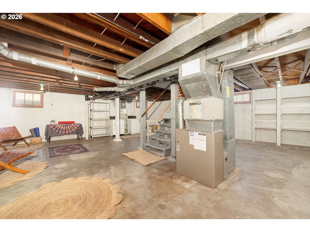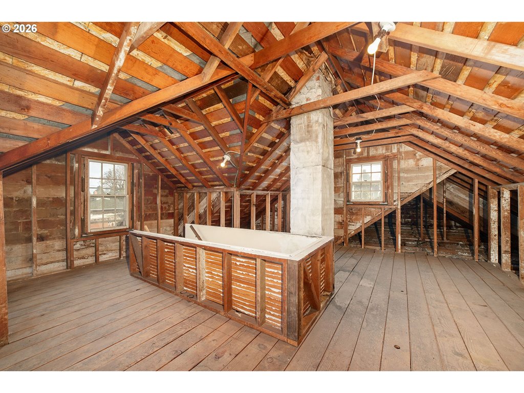 Tucked away on a large lot in the desirable University Park neighborhood, this charming home offers an inviting blend of character and opportunity. The sun-filled living room features hardwood floors, a cozy fireplace, large picture windows, and sliding glass doors that open to an oversized, fenced backyard—perfect for seamless indoor-outdoor living. Original light fixtures add timeless charm, while the quaint, light-filled kitchen feels welcoming and functional. Two comfortable bedrooms and a full bath complete the main level. Upstairs, a spacious area with high ceilings and windows offers exciting potential for future living space, while the full unfinished basement—with equally impressive ceiling height—invites endless possibilities. A detached garage and long driveway add convenience, and the location truly shines with easy access to McKenna and Portsmouth Parks, New Seasons, and nearby shops and restaurants—all just a short walk away. [Home Energy Score = 1. HES Report at rpt.greenbuildingregistry.com/hes/OR10244007]