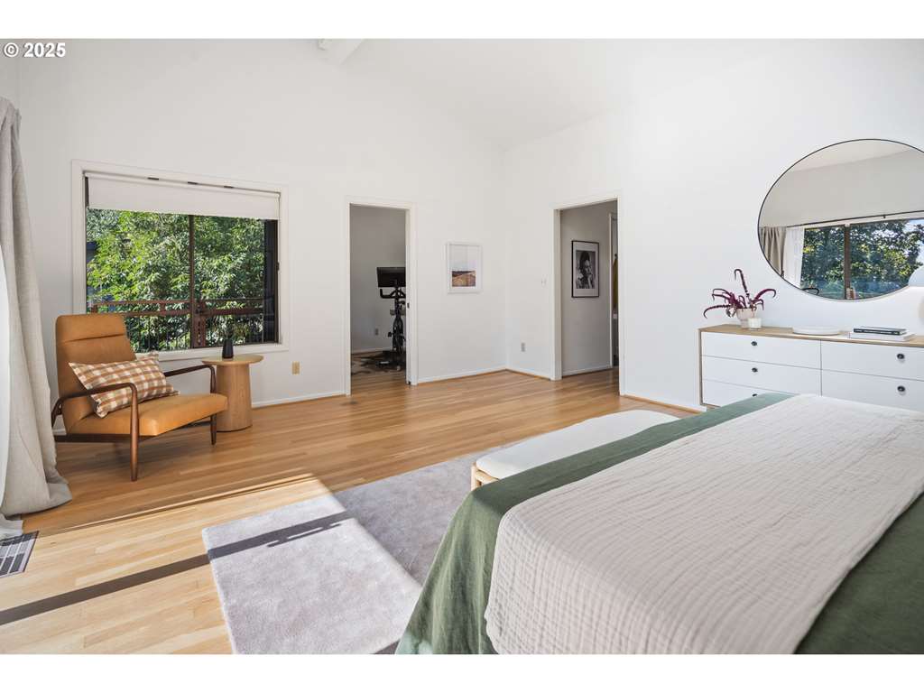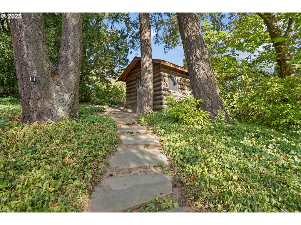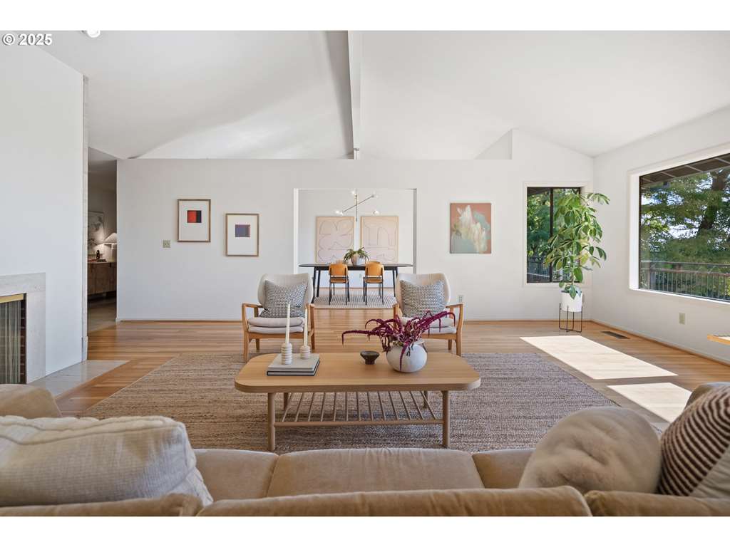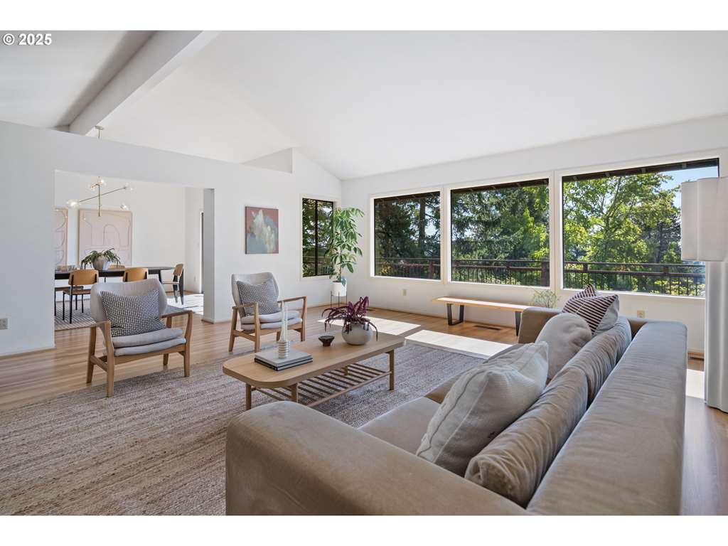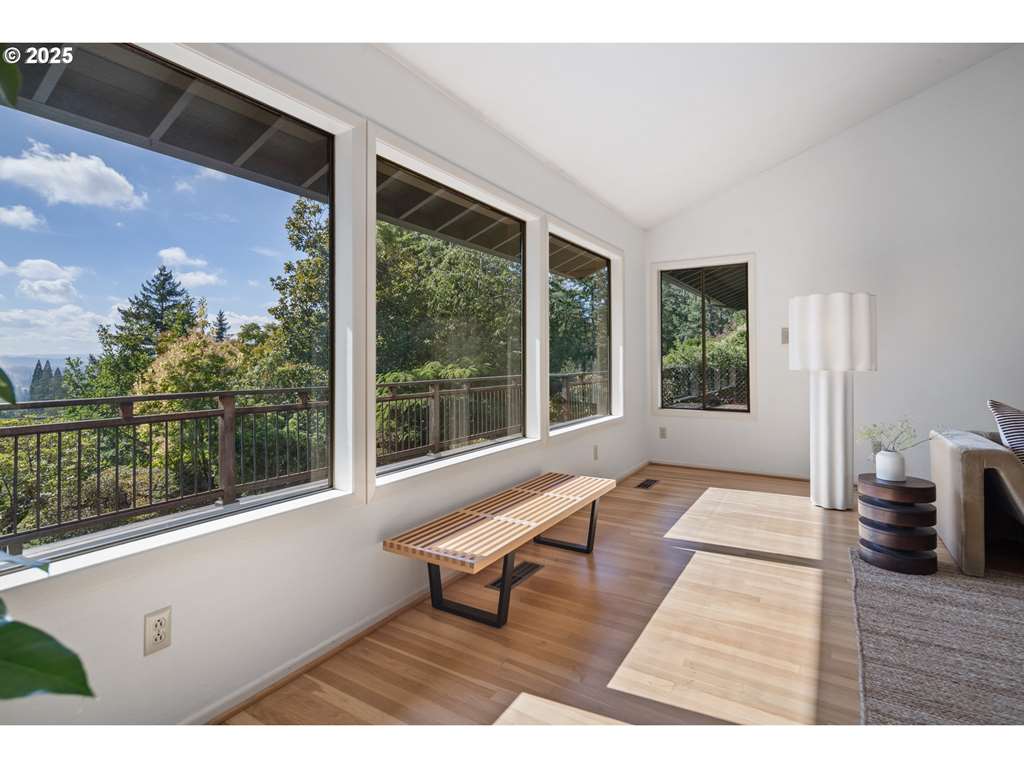 Set on nearly an acre of private, south-facing land, this beautifully updated mid-century home offers exceptional design, functionality, and breathtaking valley vistas. The thoughtfully designed floor plan provides mostly main-floor living, including generous living and dining areas, a spectacularly remodeled kitchen/family room, and three luxurious ensuite bedrooms. Perfectly suited for entertaining, the home seamlessly separates social and private spaces. On the lower level, discover a spacious great room, a fourth bedroom (no closet), a full bath, and a fun indoor pool with a sauna — ideal for year-round enjoyment. Outdoor living is just as impressive, with a large deck for gatherings, a sprawling backyard, and multiple serene spaces to relax and unwind. Additional features include electronic gate, abundant parking, detached boat garage, and a versatile outbuilding that is perfect for a home office or studio space. Tesla charge in the garage is included. Lot may be divided – possible to build another home,, buyer to perform due diligence. [Home Energy Score = 2. HES Report at rpt.greenbuildingregistry.com/hes/OR10184129]
