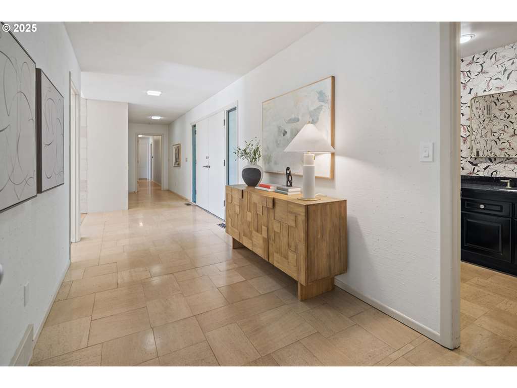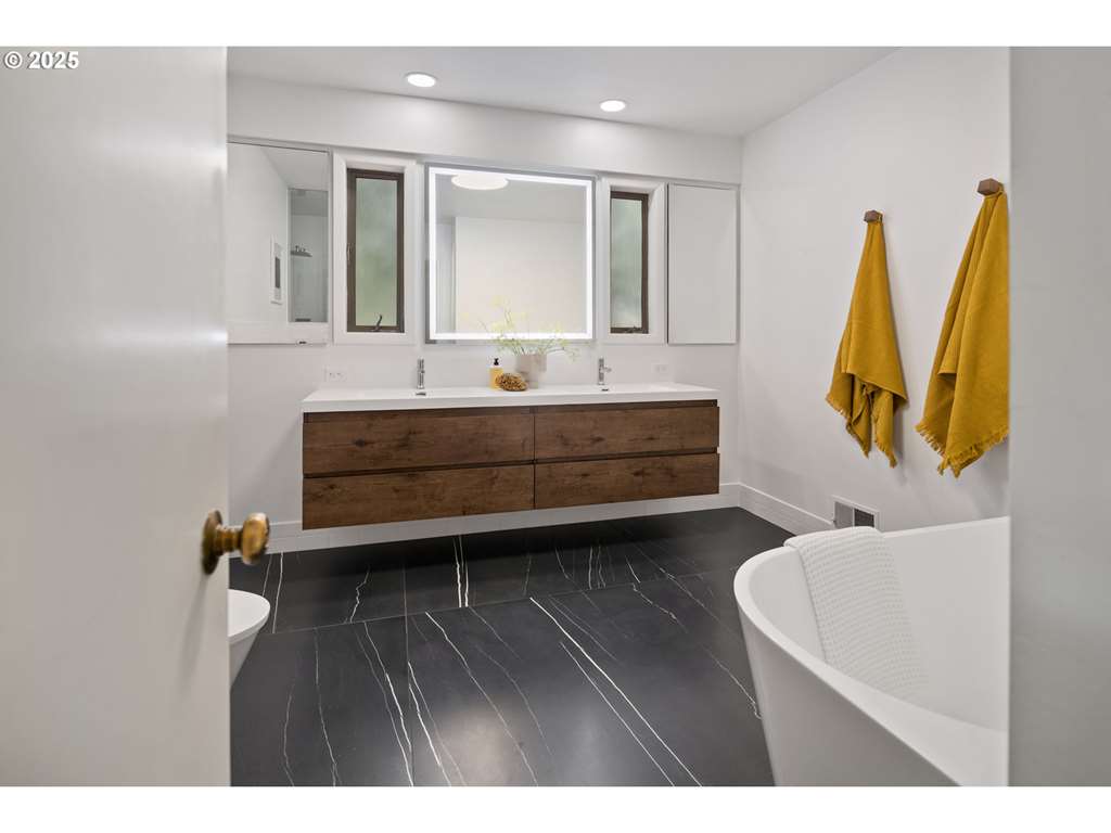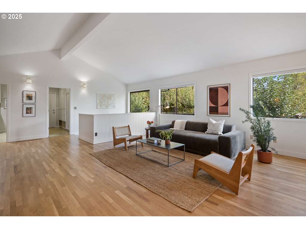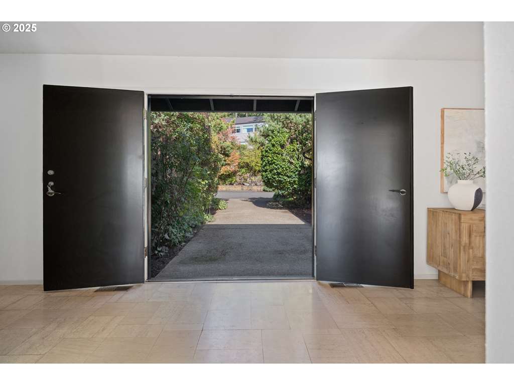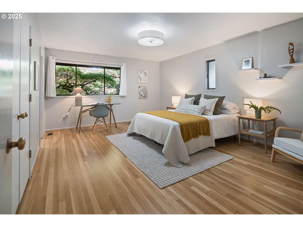 Set on nearly an acre of private, south-facing land, this beautifully updated mid-century home offers exceptional design, functionality, and breathtaking valley vistas. The thoughtfully designed floor plan provides mostly main-floor living, including generous living and dining areas, a spectacularly remodeled kitchen/family room, and three luxurious ensuite bedrooms. Perfectly suited for entertaining, the home seamlessly separates social and private spaces. On the lower level, discover a spacious great room, a fourth bedroom (no closet), a full bath, and a fun indoor pool with a sauna — ideal for year-round enjoyment. Outdoor living is just as impressive, with a large deck for gatherings, a sprawling backyard, and multiple serene spaces to relax and unwind. Additional features include electronic gate, abundant parking, detached boat garage, and a versatile outbuilding that is perfect for a home office or studio space. Tesla charge in the garage is included. Lot may be divided – possible to build another home,, buyer to perform due diligence. [Home Energy Score = 2. HES Report at rpt.greenbuildingregistry.com/hes/OR10184129]