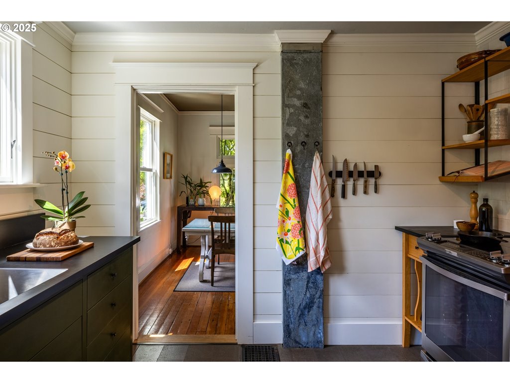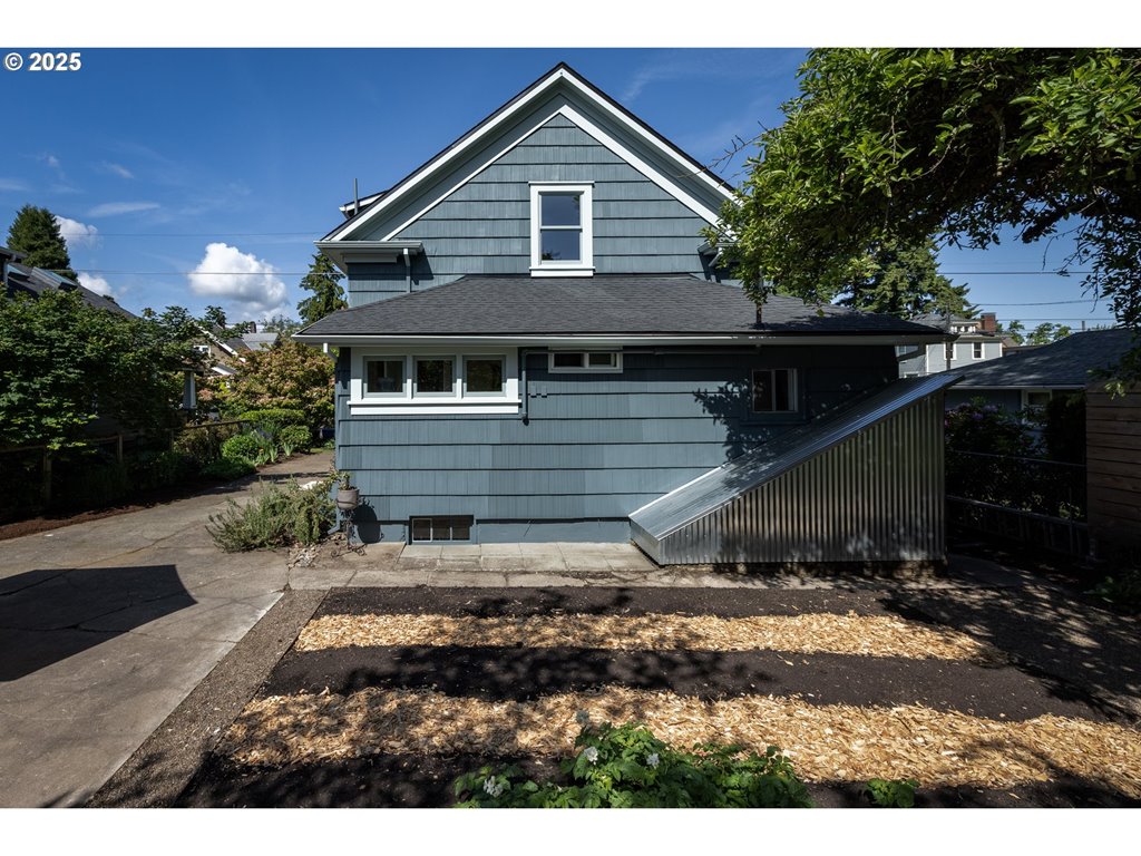 This 1908 Overlook Farmhouse has been lovingly cared for and thoughtfully updated by a designer and craftsman duo since 2000, with recent updates both inside and out. When purchased, the home had two full living quarters, separate entrances & addresses—5616 & 5618 N. Campbell. To accommodate family needs, the upstairs kitchen was removed, but the original plumbing remains, making it easy to convert back into a separate unit.Renovations quietly honor the home’s heritage while prioritizing sustainability, period authenticity, and creative reuse—blending history with craftsmanship and care. It’s a light-filled space where high ceilings and clean lines create a sense of openness and ease. Natural light fills every room, thanks to dual-paned wooden Marvin windows. Fir floors, restored classic moldings & trim, and original details add character and warmth, while thoughtful updates add a fresh, modern twist. The main floor features living and dining rooms at the front, and a kitchen, bath, mudroom, and flex bedroom at the back. Upstairs, three rooms and a full bath offer flexible space for bedrooms, studio work, or rental potential. The basement includes a separate outdoor entrance, laundry, and ample room for storage, a workshop, or creative projects.Outside, there are flower, herb, and vegetable gardens, plus a newly planted shade garden. An existing concrete patio supports outdoor dining and offers room to grow—consider a greenhouse, a covered seating area or a garage with ADU. This home is only steps away from The Stacks Coffeehouse, The Mud Room Ceramics, Letterpress PDX, Open Wellness, Urban Pilates, The Old Gold, Full Bar, Double Mountain Brewery, Backyard Social, Arbor Lodge New Seasons, Peninsula Park and Rose Garden. Max is nearby as well as major bike routes both south & east. Downtown is 7 minutes and the Adidas HQ only .5 miles. This home has a simplistic richness that creates calm in these hectic modern times—full of light, possibility, and soul. [Home Energy Score = 4. HES Report at rpt.greenbuildingregistry.com/hes/OR10237936]