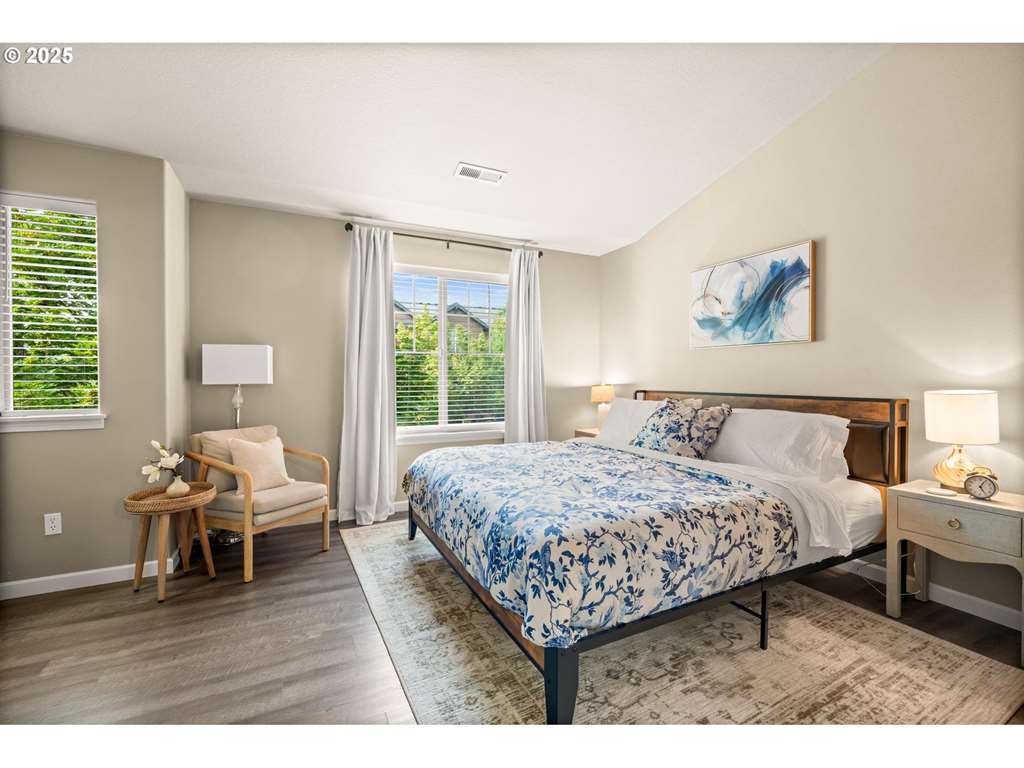 Nestled into the highly coveted Evergreen Park neighborhood, discover this tastefully updated townhome that backs to a lush, private nature preserve. Sit out in your private, fenced backyard and enjoy the quiet, serene setting. Inside, you’ll love the open great room floorplan – ideal for entertaining, and the central kitchen island with eat-at bar adds additional seating. The oversized bedrooms upstairs feature vaulted ceilings and an adjacent open loft-like hallway – perfect for a little work station or reading nook. Luxury vinyl plank flooring throughout (no carpeting), attached one-car garage, fresh paint, new washer and dryer, new blinds, cozy gas fireplace, central AC, large kitchen pantry and more! Conveniently located near Intel, Amazon, Hillsboro Airport, Genentech and with easy access to Sunset Hwy too. Great investment opportunity – major employers nearby and no rent cap. 30 day plus rentals are OK. All appliances included. [Home Energy Score = 8. HES Report at rpt.greenbuildingregistry.com/hes/OR10236680]
