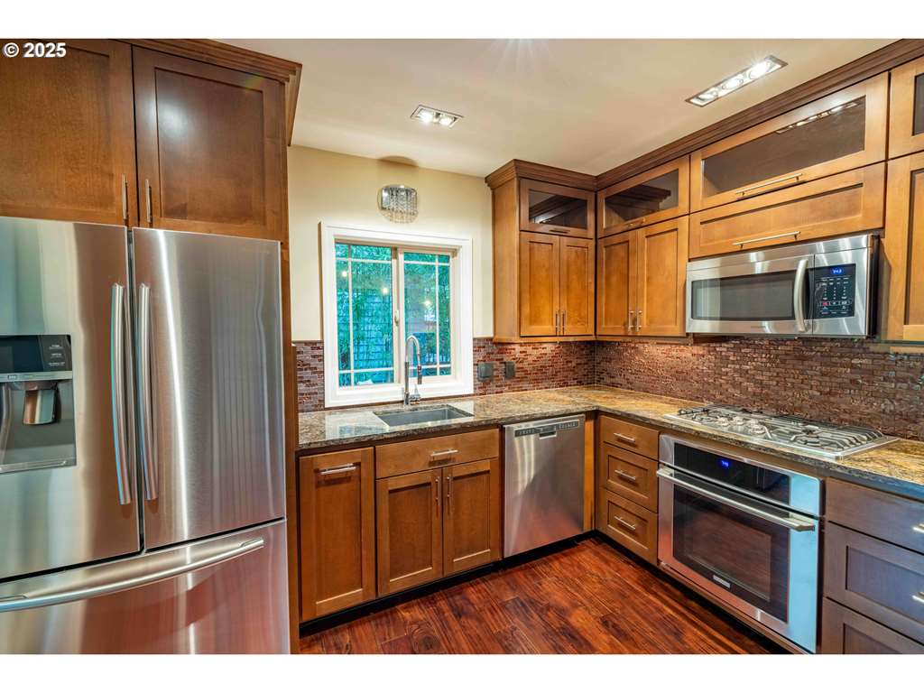 Renovated Retreat in the Trees in the Heart of Southwest Portland! Tucked into a quiet corner of the Hayhurst neighborhood, this thoughtfully updated home blends privacy, quality, and everyday convenience. Custom woodwork, a cozy fireplace, and oversized windows that flood the home with natural light and serene views of the surrounding greenspace. The kitchen features granite counters, a full tile backsplash, custom cabinetry, and stainless steel appliances.Nearly every detail has been refreshed, including new flooring, siding, roof, double-pane windows, an upgraded electrical panel, high efficiency gas furnace, and a tankless water heater, creating a space that feels both modern and warm.The separate basement entrance offers excellent multigenerational living potential or the opportunity to create an ADU.Step outside to discover truly special outdoor spaces. Professionally landscaped and hardscaped grounds frame a stunning detached cedar sauna with expansive windows, offering spa-like relaxation and forest views. Multiple private patios and a tree-level deck provide ideal spots for lounging or entertaining.Minutes from Multnomah Village, Hillsdale, Gabriel Park, SW Community Center, OHSU, and downtown. This home is a rare find in a coveted location.