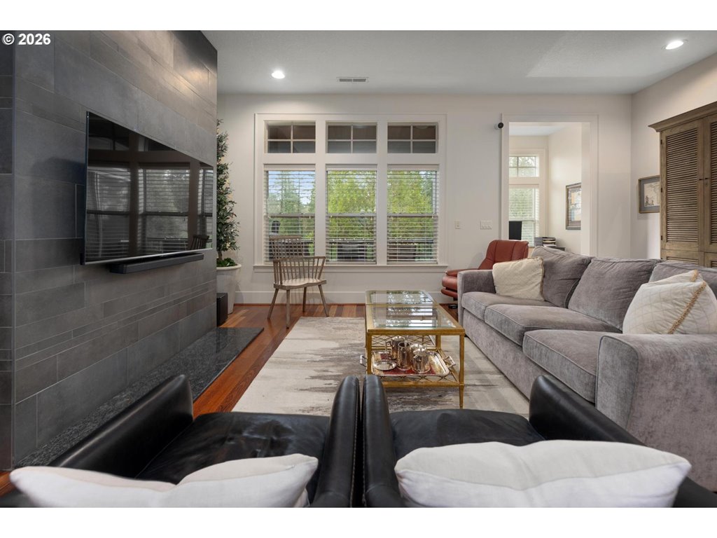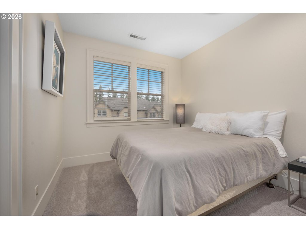 This impeccable townhome is appointed with updated and high end finishes. It features high ceilings and a comfortable, open feel throughout. It’s efficient yet spacious, with a solid, well-built feel that makes it easy to settle right in. The kitchen features cherry cabinets, granite countertops, a 5 burner gas Wolf cooktop and range and an island eating bar. Two ensuite bedrooms offer flexible living and private space for everyone. The main bedroom has an oversized tile shower with a rain shower head and two vanities with granite counters. Classic shutters are in the living and dining room. A tiled wall in the powder bath is a gorgeous feature. The lower level bonus room is a great office/flex space. The storage room has built in cabinets. Extra storage is available in the garage along with an EV Charger.The deck overlooks a private green space offering a peaceful setting with privacy and soothing views. Recent updates include new carpet and interior paint in 2024, a new hot water heater in 2024, a new HVAC system in 2022, and remodeled bathrooms. Located in the popular Renaissance at Peterkort Woods community, residents enjoy a clubhouse, pool, and a friendly neighborhood atmosphere and a solid HOA.