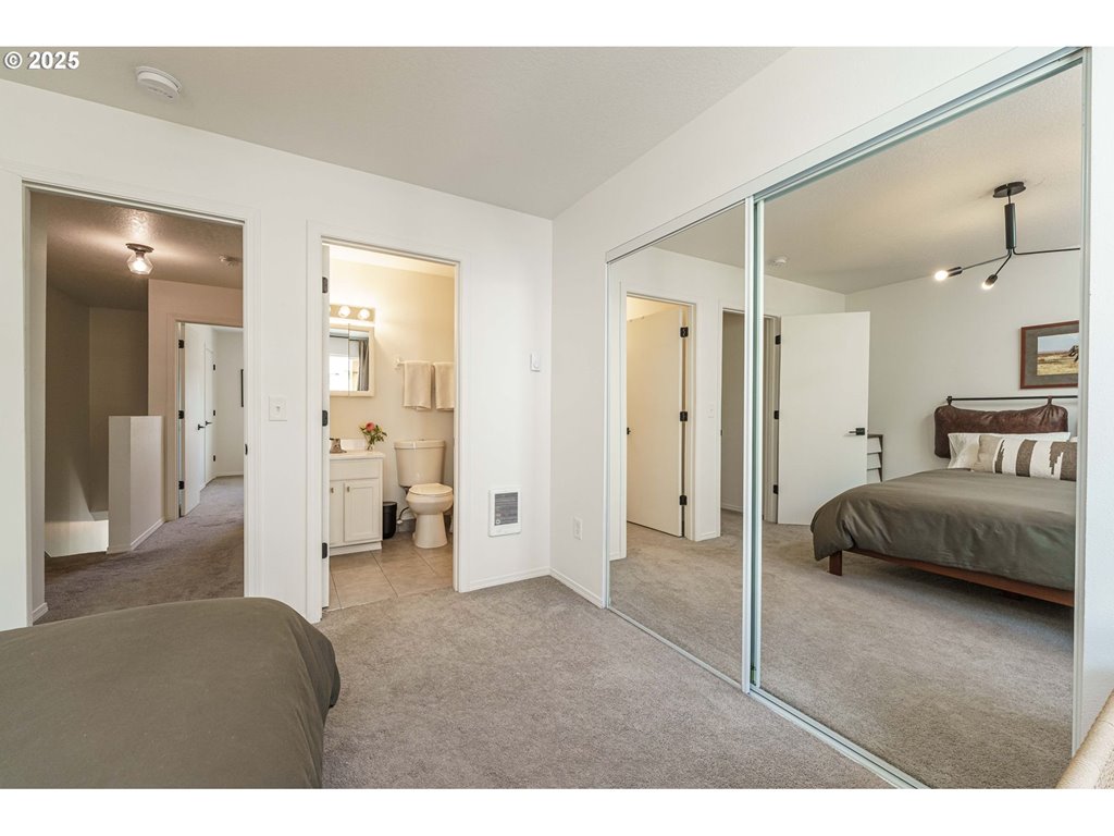Discover the perfect blend of style, flexibility, and convenience in this 2 bd/3bath townhouse with a versatile bonus den/office space. Just steps from Cathedral Park and the vibrant shops and eateries of St Johns. This is right in the center of one of Portland’s most beloved neighborhoods. The entry has a den with tall ceilings, and a full bath allowing for endless options: guest suite or office. New LVP flooring adds a modern touch. The main floor welcomes you with an airy open layout, cozy gas fireplace, and large windows that look the space with natural light. The spacious kitchen boasts abundant counter space and cabinets, flowing seamlessly into the dining area. Step outside to your private deck and take in sweeping territorial views of the iconic St. Johns Bridge and Forest Park. Upstairs, two spacious bedrooms provide peaceful retreats. The primary suite features its own bath, while the second bedroom includes a generous walk in closet. Low HOA and no rental cap, with pet friendly policies this home is as practical as charming. Easy access to downtown Portland, Beaverton, and Sauvie Island makes it an ideal base for work or play. [Home Energy Score = 8. HES Report at rpt.greenbuildingregistry.com/hes/OR10010522]