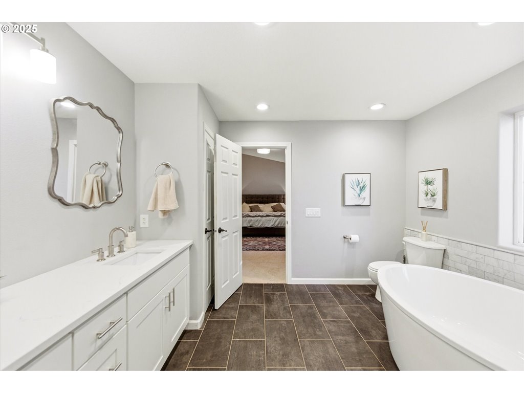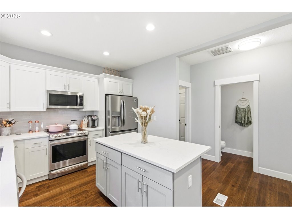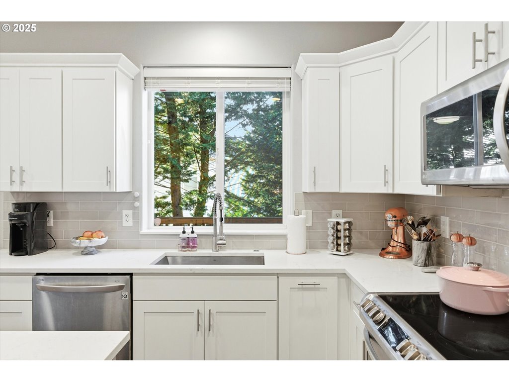 Open house Sunday, Nov. 23, 2:00 – 4:00 pm- This beautiful, luxurious 4-bedroom, 2.5-bath home offers timeless craftsmanship, quality finishes, and an inviting, light-filled layout. The main level features an expansive formal living and dining area with high ceilings, abundant windows, a gas fireplace, and seamless flow into the gourmet island kitchen. Quartz counters, stainless steel appliances, a gas cooktop with hood, built-in oven and microwave, and a spacious dining area make the kitchen perfect for both everyday living and entertaining. Step outside to the private, fenced backyard patio surrounded by mature greenery that creates a serene, secluded setting. Upstairs, the elegant primary suite includes a spa-like bath with a freestanding soaking tub, walk-in tile shower, double quartz vanity, and a generous custom designed walk-in closet by Container Closets. Three additional bedrooms and a full bath complete the upper level, offering excellent flexibility for family, guests, or office space. Ideally located just minutes from Progress Ridge shopping, dining, and cinema—and walking distance to a neighborhood park—this home delivers an exceptional blend of quality, comfort, and convenience.