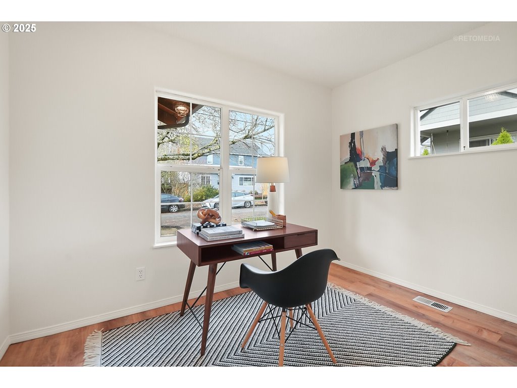 Come live in this beautiful charmer! Light and bright home with lots of windows for the sunshine to peek through. All refreshed for you to enjoy; new functional kitchen, new modernized bathroom, and an open concept main level with two bedrooms. Private primary bedroom upstairs for quiet time and relaxation or can be transformed into your own in-home office space. The bonus area below can be a family room, hobby, arts & craft, theatre or work-out flex space to be tailored to your needs. Outdoor living space is at its best! Flat and fenced backyard has plenty of room to garden or large enough to play badminton, or build an ADU. Perfect place to gather with friends in the covered deck even on those rainy days. The front porch is a perfect place to greet neighbors and have conversations. Easy access to town, Trader Joe’s, Reed College, and coffee shops! You will love living here! [Home Energy Score = 5. HES Report at rpt.greenbuildingregistry.com/hes/OR10242854]