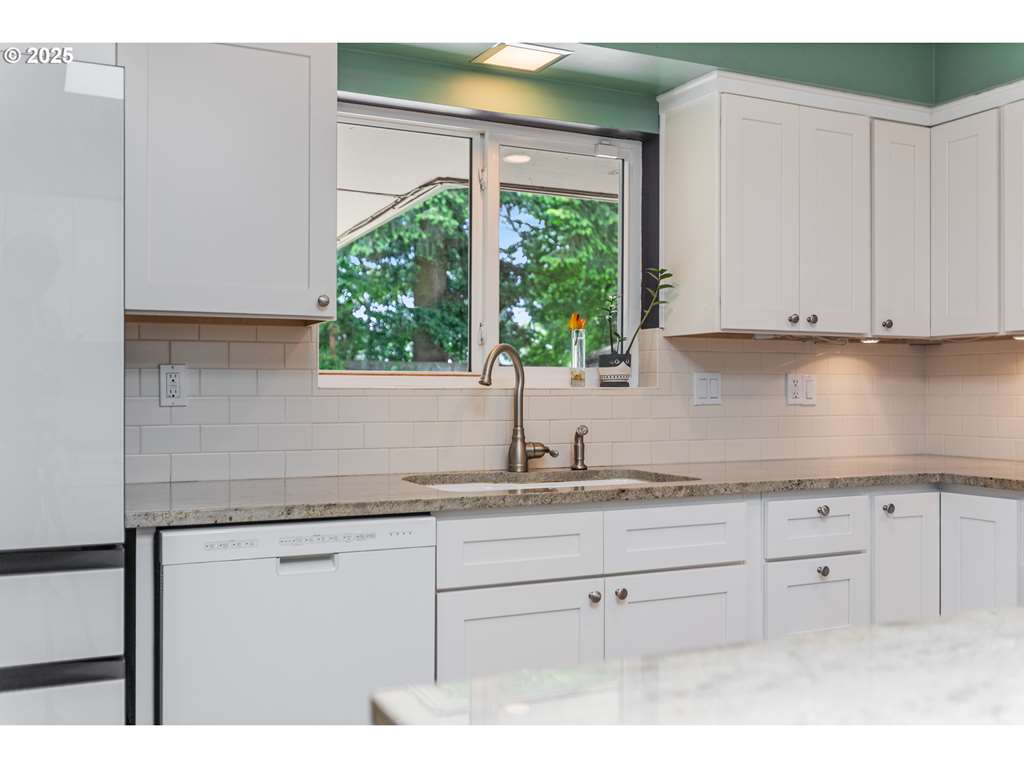 Glendoveer mid-century ranch set in a quiet tree-lined neighborhood. This broad-shouldered 1964-built gem offers sought-after mostly main level living with clean lines, generous room sizes and plenty of updates. Effortlessly blending formal and relaxed spaces with a tiled entry, hardwood floors, living & dining rooms, as well as a more casual family room with vaulted wood ceilings, two wood-burning fireplaces, main floor laundry room, en-suite primary, and gorgeous backyard. Bright and sunny kitchen with fresh white appliances, granite counters, pull-out pantry, skylight, work space, and eating bar. The lower level includes a third bedroom, finished bonus area, and a fabulous office/craft room. Abundant storage throughout, plus a two car garage. Oversized fenced lot, with newer automatic sprinkler system and a large patio will make summer entertaining a breeze. Don’t miss this one! [Home Energy Score = 3. HES Report at rpt.greenbuildingregistry.com/hes/OR10206971]