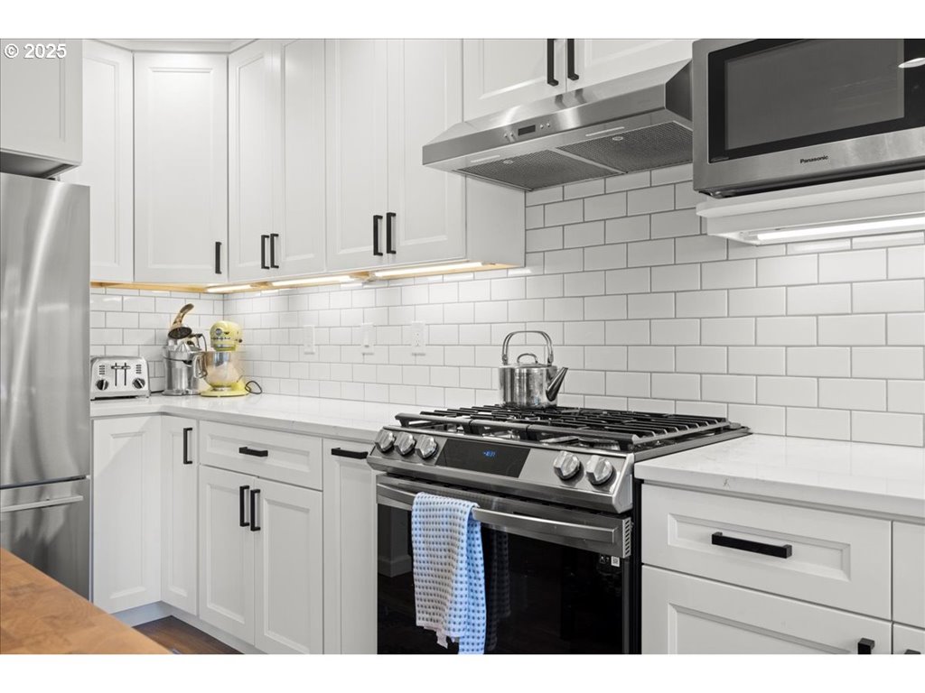 Super cute and freshly updated, this Bauman-built traditional is Raleigh Hills charm at its best. Thoughtfully refreshed with a 2022 kitchen remodel—new cabinetry, Samsung appliances, under-cabinet lighting, and recessed lighting—this home blends mid-century soul with modern ease.Original oak hardwood floors, two cozy wood-burning fireplaces, and classic built-ins create warm and welcoming living spaces. The flexible lower level is perfect for a bonus room, office, or guest space.Enjoy mornings or evenings on the newly redone deck (2021/22), plus the convenience of a large two-car attached garage. New hardware throughout and a small, well-kept eight-home community make life easy.Walk to New Seasons, Fred Meyer, and parks—everything you love about Raleigh Hills is just around the corner!