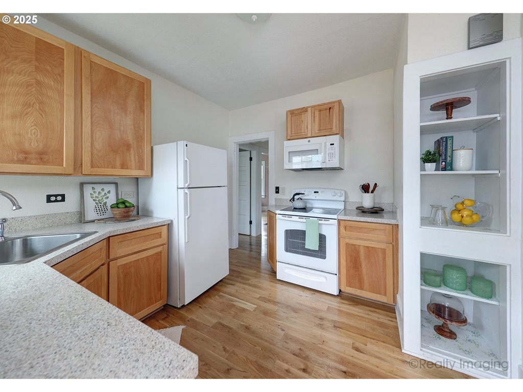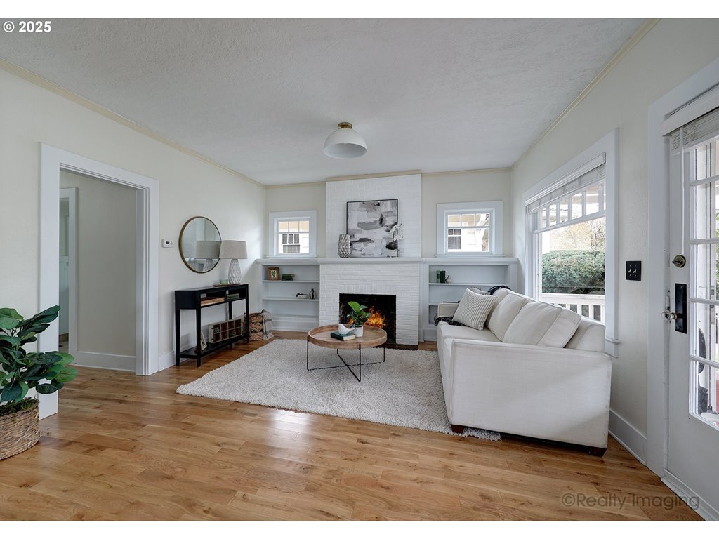 Just the sweetest little bungalow, still featuring gorgeous original details and modern updates. You’ll love the newly fenced, private backyard and patio – perfect for entertaining, harvesting fruit trees, playing catch with pets, raising chickens or gardening in the many raised beds. Gorgeous newer hardwood floor grace most of the main level, including the kitchen and the sunniest breakfast nook with built-in banquet seating. The large living room features a cozy, wood-burning fireplace and original built-ins. The huge adjacent dining room also showcases lovely original built-in cabinetry. There is a narrow staircase up to the partially finished attic offering 483 SF of opportunity. Opportunity abounds in the unfinished basement as well, which is open and clear – a great canvas for your design ideas and/or storage needs (there is an exterior entrance to the basement as well). Additional amenities include: new light fixtures, oversized covered front porch, all appliances included, newer detached one-car garage and more! [Home Energy Score = 4. HES Report at rpt.greenbuildingregistry.com/hes/OR10190347]