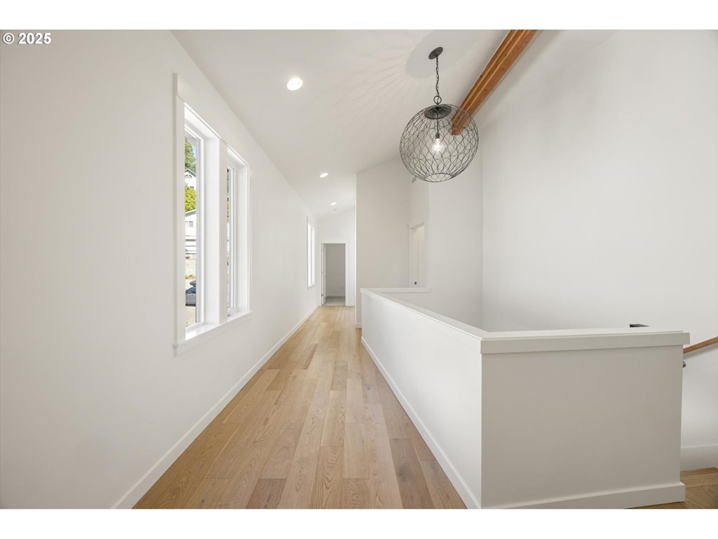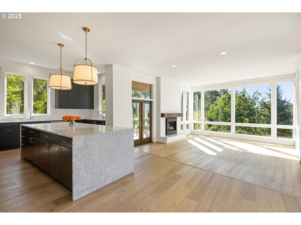 Tucked into the SW Hills, this modern home was designed to embrace light, space, and sweeping south-facing views. Built in 2019, its clean, contemporary architecture spans 4,437 sq ft with an effortless sense of balance and flow. Expansive windows flood the open main level with natural light, connecting a statement kitchen featuring a 6-burner Fulgor Milano cooktop and range, Viking appliances, and an oversized quartz island with eat-bar to a covered deck and dual-sided fireplace for sublime evenings enjoying the valley view both inside and out. Upstairs, vaulted ceilings with exposed beams feel warm and spacious, and the primary suite retreat offers a spa-inspired bath with heated floors, a soaking tub and walk-in shower. The lower level ties the whole package together with an epic bonus room, wet bar, and second covered deck – a perfect space for rumpus and lively entertaining. Located steps from St. Thomas More and minutes to the 4T Trail, this home is situated on Portland’s iconic trail network where you can walk to the Zoo, hike to Council Crest, or run Fairmount among Olympians. Thoughtful design, premium finishes, and meticulous care make this a standout example of modern living in the West Hills.