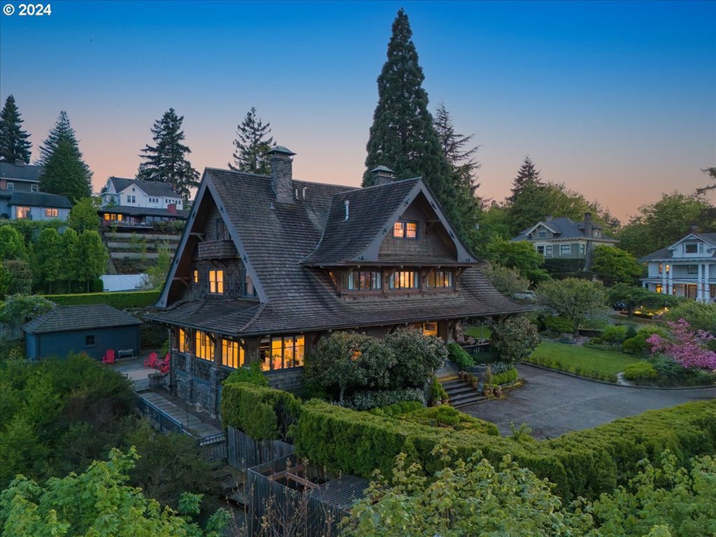 Step into the rich history and luxury of the Joseph Gaston House, an architectural masterpiece built in 1911 by William C. Knighton in Portland’s West Hills. This captivating estate offers a timeless allure with its elegant living spaces, and impeccable craftsmanship. Perched on 3/4 of an acre in The Grid, it commands panoramic views of the city skyline and mountains, creating an idyllic backdrop for everyday living. Features include intricate moldings, high ceilings, stunning primary bedroom with walk-in closet and spacious bathroom with steam shower, and remarkable cellar. Outside, a beautiful patio overlooks downtown Portland, providing a serene retreat to unwind and take in the scenery. Extensively remodeled in the early 2000s, including full replacement of plumbing, and electrical. From its historic charm to modern amenities, the Joseph Gaston House epitomizes sophistication and elegance, offering a rare opportunity to own a piece of Portland’s architectural legacy. Option to included all furniture excluding all art and piano. [Home Energy Score = 1. HES Report at rpt.greenbuildingregistry.com/hes/OR10227560]