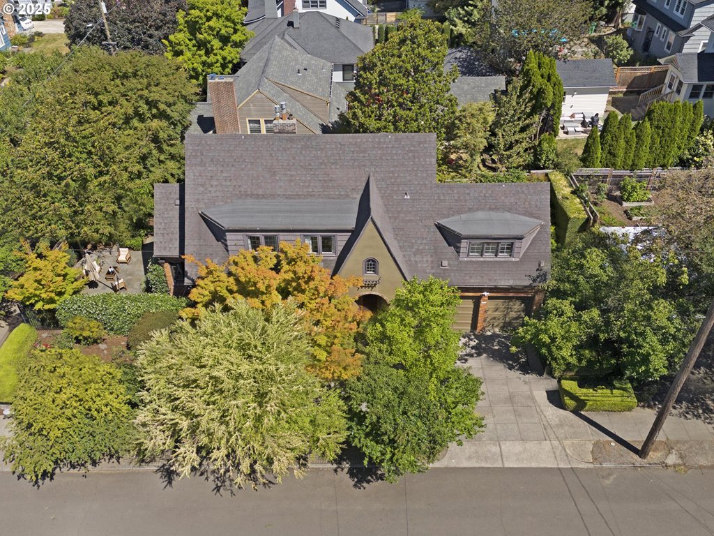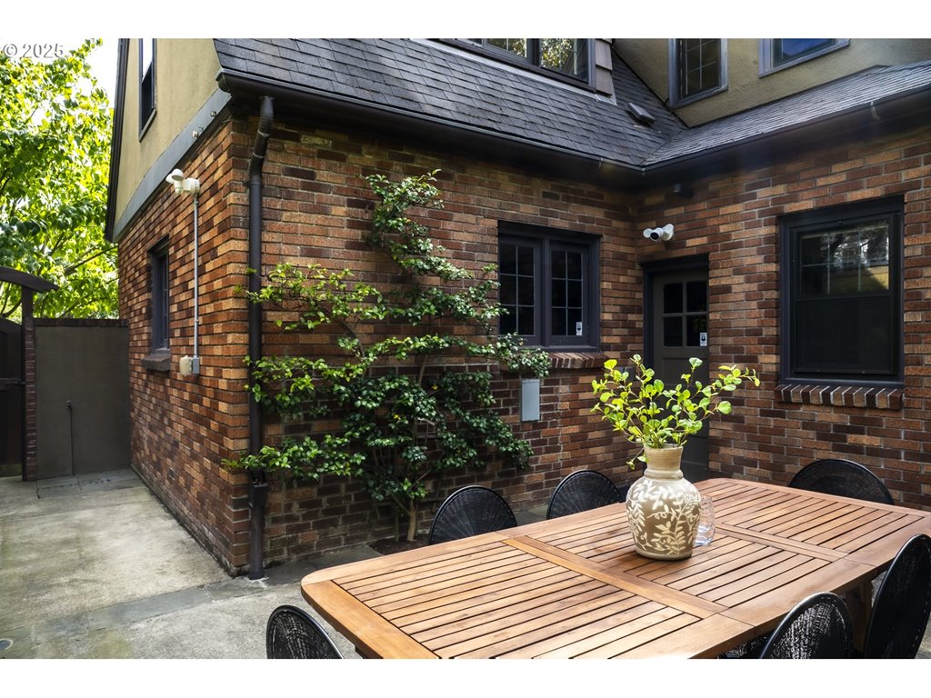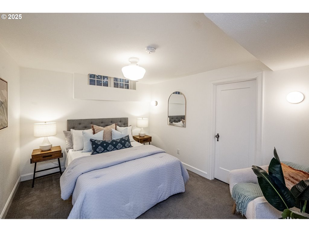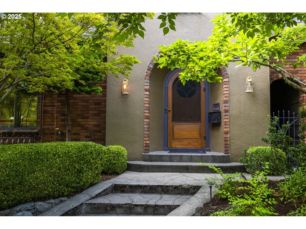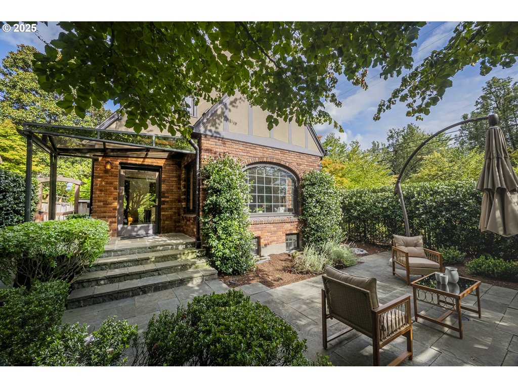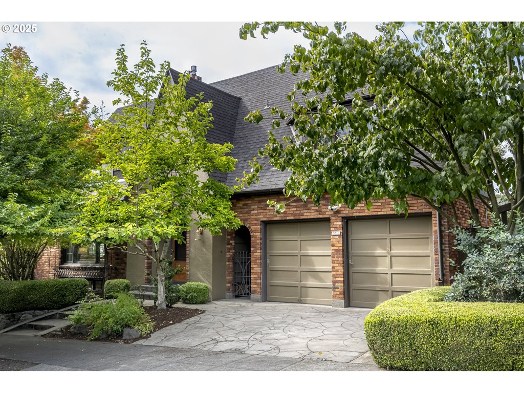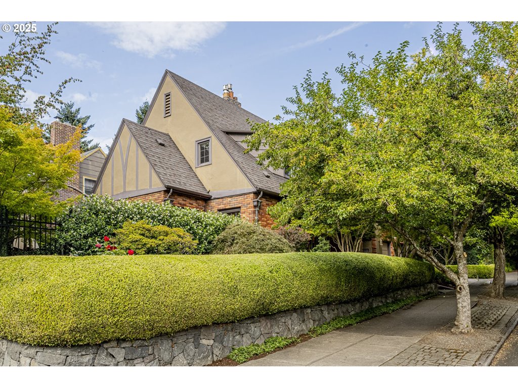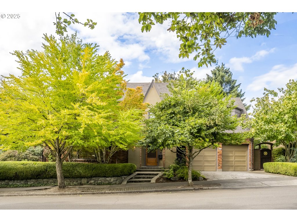 Nestled on a quiet, tree-lined corner lot in one of Portland’s most coveted neighborhoods, this enchanting English Tudor blends timeless elegance with thoughtful modern updates—just steps from the vibrant Hawthorne and Division corridors. Phenomenal natural light pours through leaded glass windows in the expansive living room and sunroom, filling the home with warmth. The main floor offers a graceful layout with a formal dining room, sunroom, kitchen with a cozy breakfast nook, and an office space. Upstairs you’ll find three generously sized bedrooms, including the primary with two large walk-in closets and a bathroom dripping with vintage charm. The fully renovated lower level adds a large family room with fireplace, two additional bedrooms (one non-conforming) plus bonus room, a stunning new bathroom with heated floors, kitchenette, laundry room, and new windows—perfect as a private guest retreat, or flexible living space. Additional updates include new PEX plumbing, fresh interior paint, updated light fixtures, and a finished flex space upstairs with cork flooring. Step outside and enjoy a sunset-facing patio overlooking lush gardens and a serene water feature. Hard to find detached two-car garage for extra storage. Located on a low-traffic greenbelt, this friendly community hosts an annual block party and is minutes from parks, and some of Portland’s best shopping and dining. [Home Energy Score = 4. HES Report at rpt.greenbuildingregistry.com/hes/OR10193570]