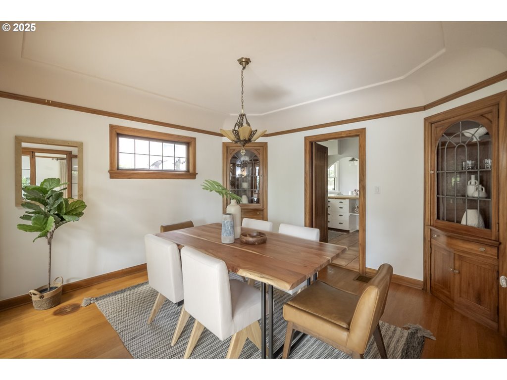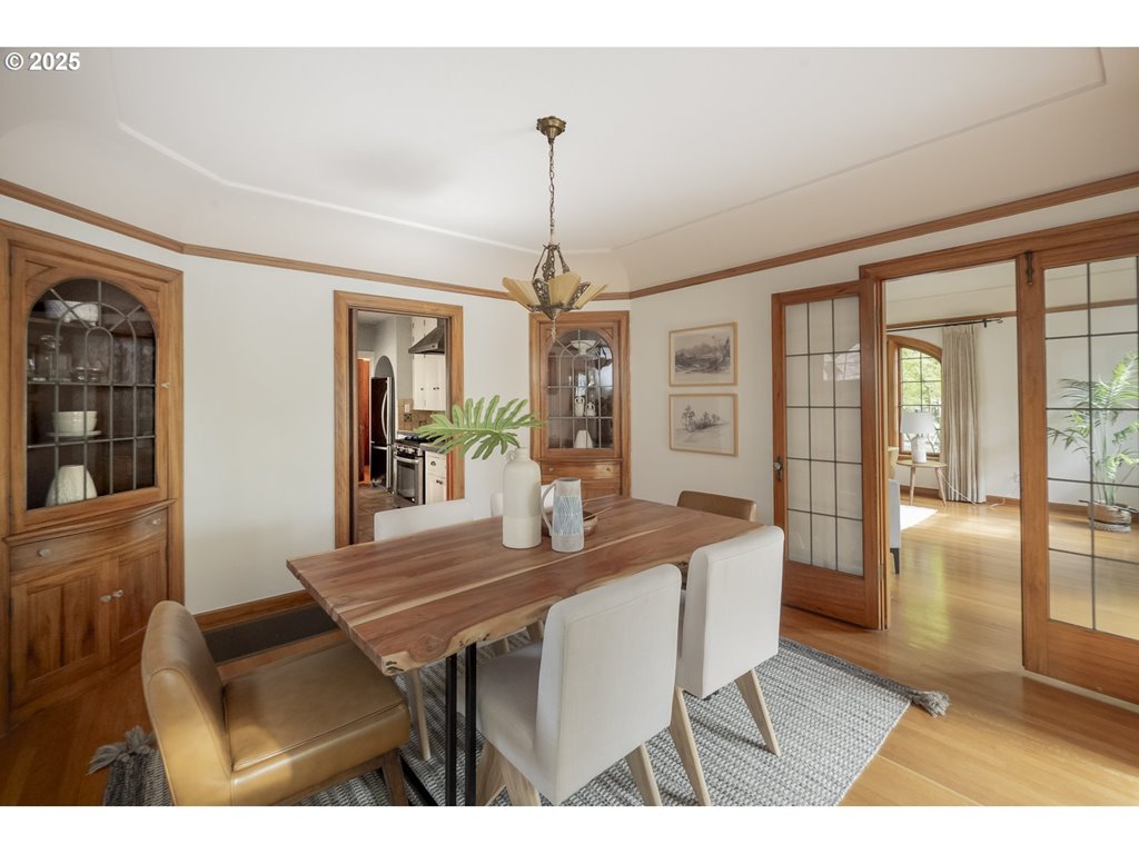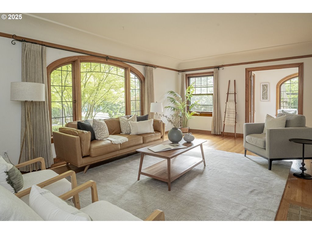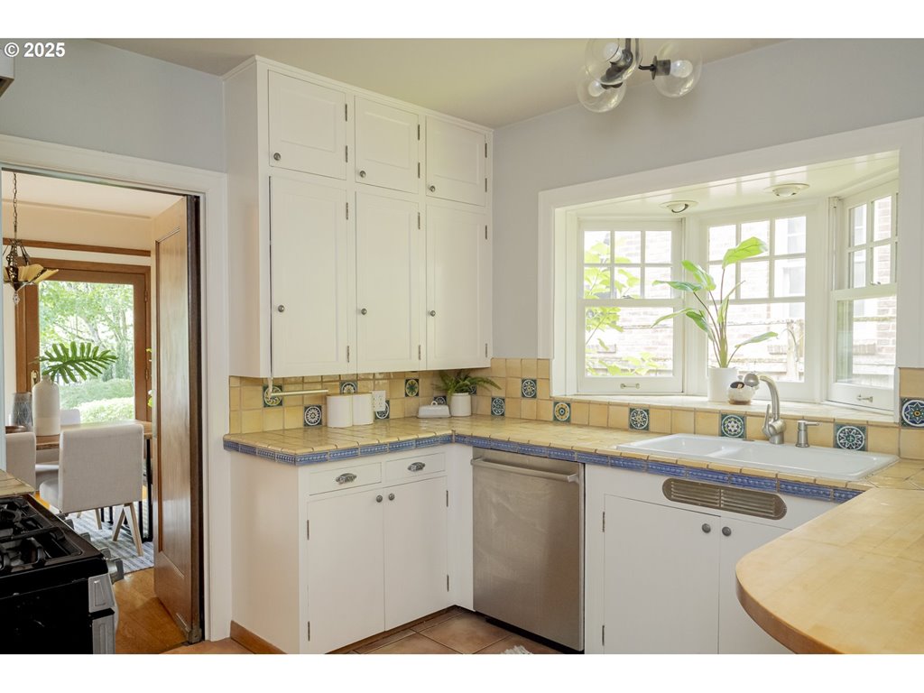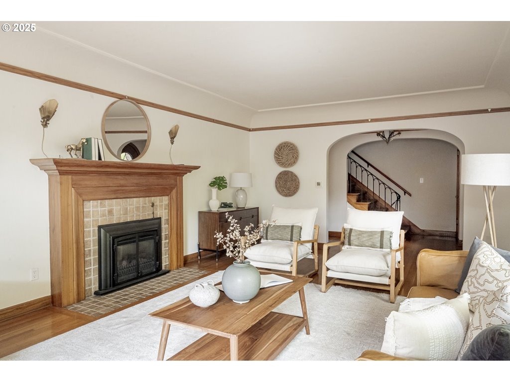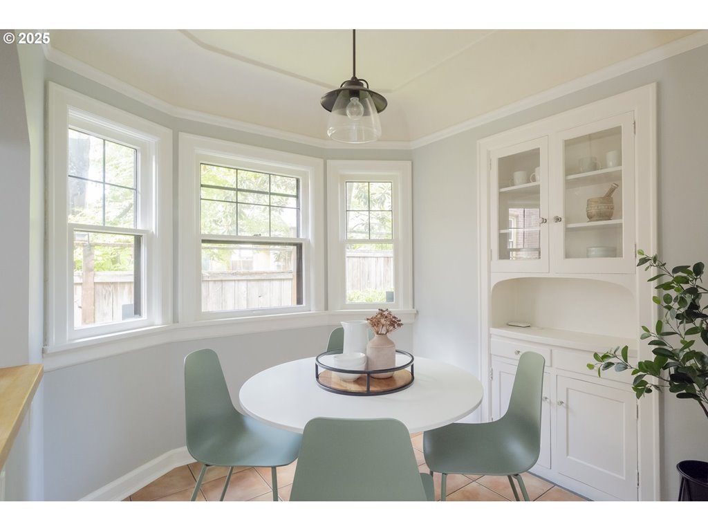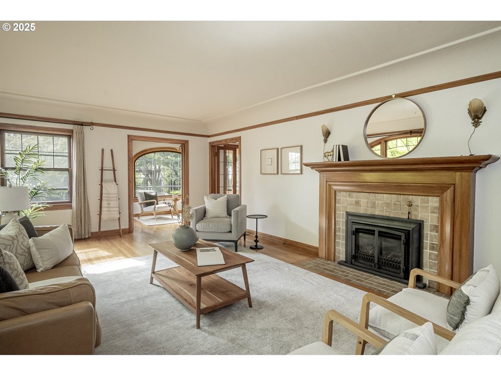 Nestled on a quiet, tree-lined corner lot in one of Portland’s most coveted neighborhoods, this enchanting English Tudor blends timeless elegance with thoughtful modern updates—just steps from the vibrant Hawthorne and Division corridors. Phenomenal natural light pours through leaded glass windows in the expansive living room and sunroom, filling the home with warmth. The main floor offers a graceful layout with a formal dining room, sunroom, kitchen with a cozy breakfast nook, and an office space. Upstairs you’ll find three generously sized bedrooms, including the primary with two large walk-in closets and a bathroom dripping with vintage charm. The fully renovated lower level adds a large family room with fireplace, two additional bedrooms (one non-conforming) plus bonus room, a stunning new bathroom with heated floors, kitchenette, laundry room, and new windows—perfect as a private guest retreat, or flexible living space. Additional updates include new PEX plumbing, fresh interior paint, updated light fixtures, and a finished flex space upstairs with cork flooring. Step outside and enjoy a sunset-facing patio overlooking lush gardens and a serene water feature. Hard to find detached two-car garage for extra storage. Located on a low-traffic greenbelt, this friendly community hosts an annual block party and is minutes from parks, and some of Portland’s best shopping and dining. [Home Energy Score = 4. HES Report at rpt.greenbuildingregistry.com/hes/OR10193570]