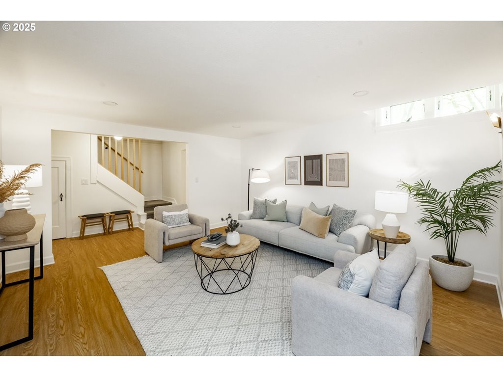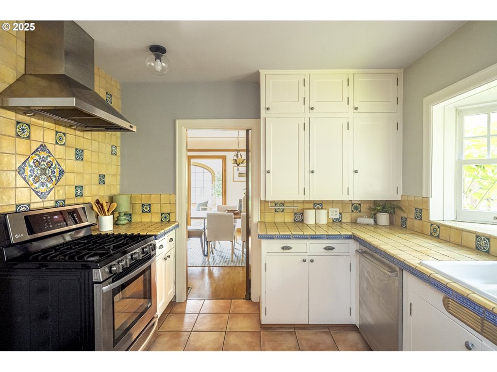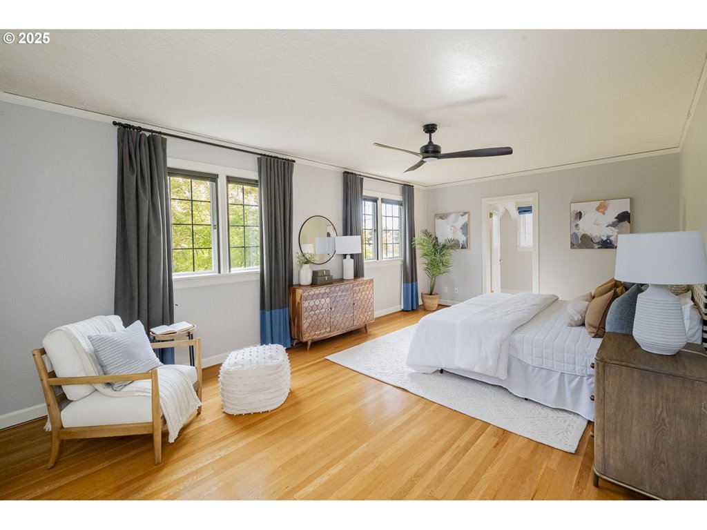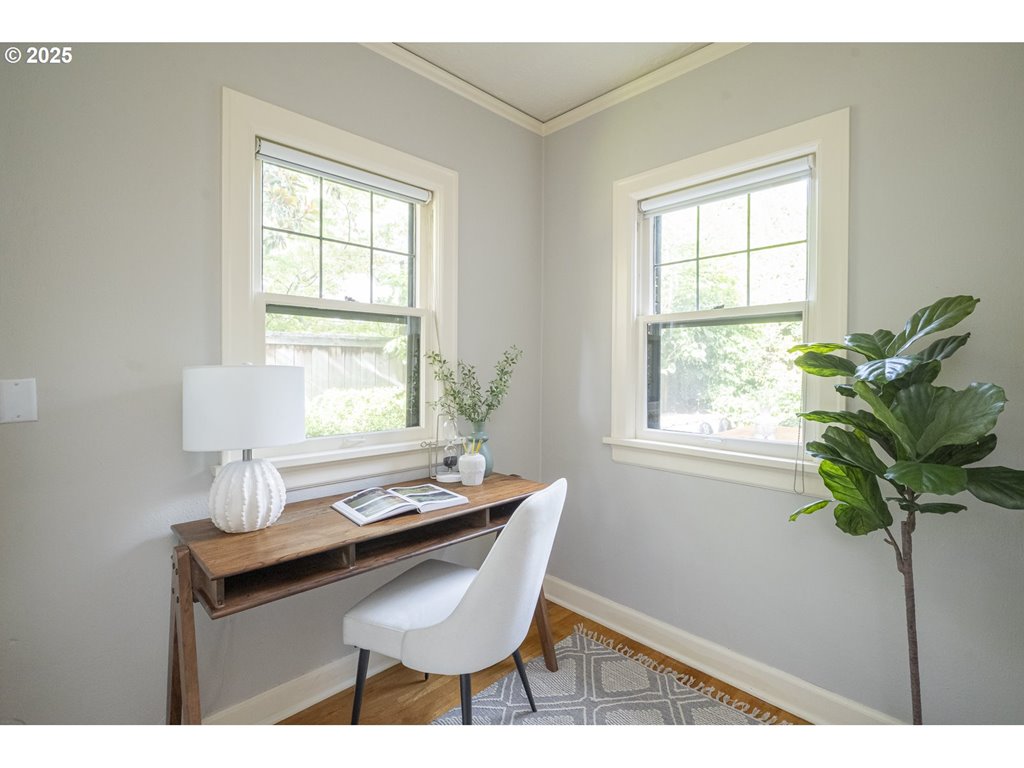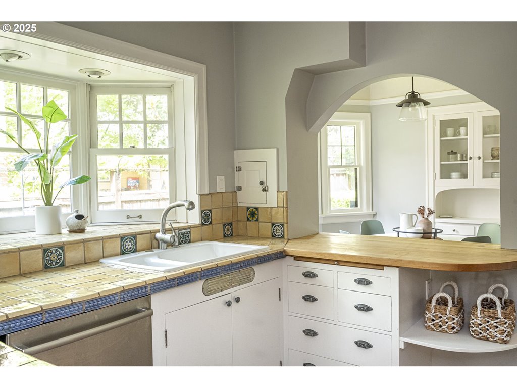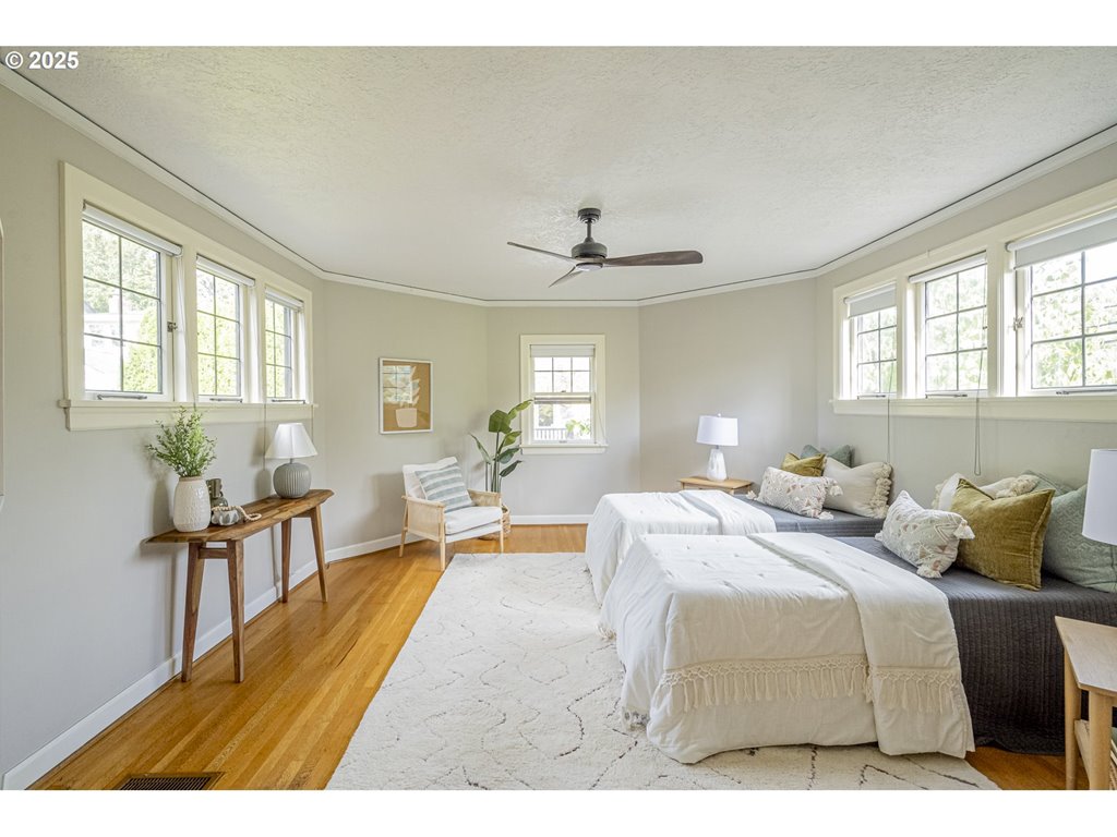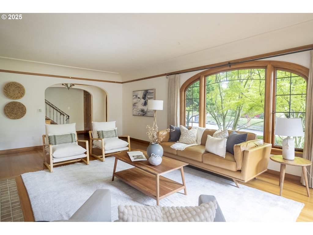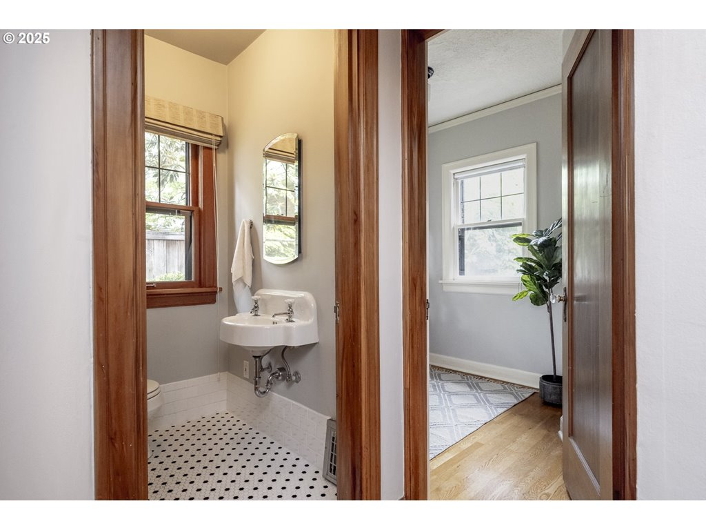 Nestled on a quiet, tree-lined corner lot in one of Portland’s most coveted neighborhoods, this enchanting English Tudor blends timeless elegance with thoughtful modern updates—just steps from the vibrant Hawthorne and Division corridors. Phenomenal natural light pours through leaded glass windows in the expansive living room and sunroom, filling the home with warmth. The main floor offers a graceful layout with a formal dining room, sunroom, kitchen with a cozy breakfast nook, and an office space. Upstairs you’ll find three generously sized bedrooms, including the primary with two large walk-in closets and a bathroom dripping with vintage charm. The fully renovated lower level adds a large family room with fireplace, two additional bedrooms (one non-conforming) plus bonus room, a stunning new bathroom with heated floors, kitchenette, laundry room, and new windows—perfect as a private guest retreat, or flexible living space. Additional updates include new PEX plumbing, fresh interior paint, updated light fixtures, and a finished flex space upstairs with cork flooring. Step outside and enjoy a sunset-facing patio overlooking lush gardens and a serene water feature. Hard to find detached two-car garage for extra storage. Located on a low-traffic greenbelt, this friendly community hosts an annual block party and is minutes from parks, and some of Portland’s best shopping and dining. [Home Energy Score = 4. HES Report at rpt.greenbuildingregistry.com/hes/OR10193570]