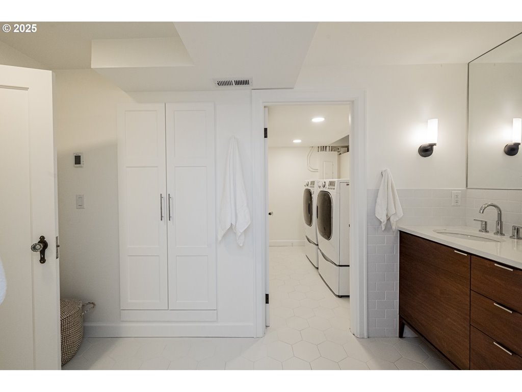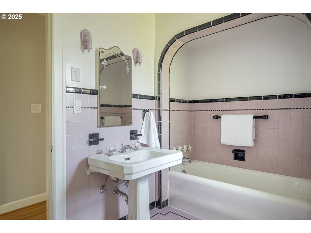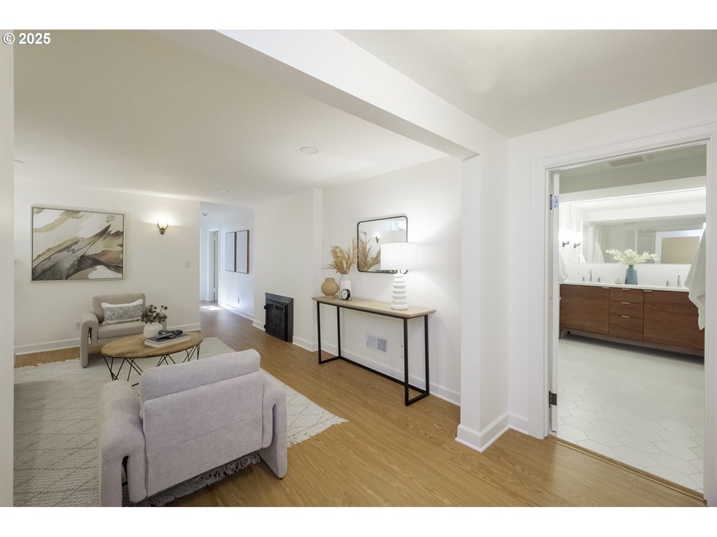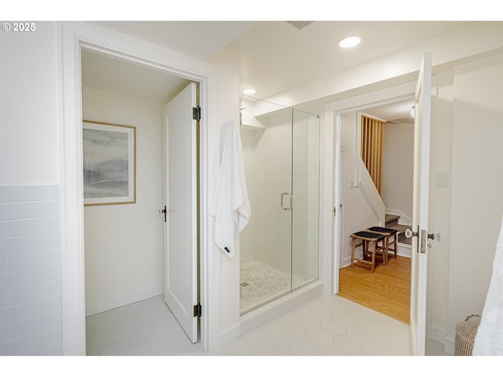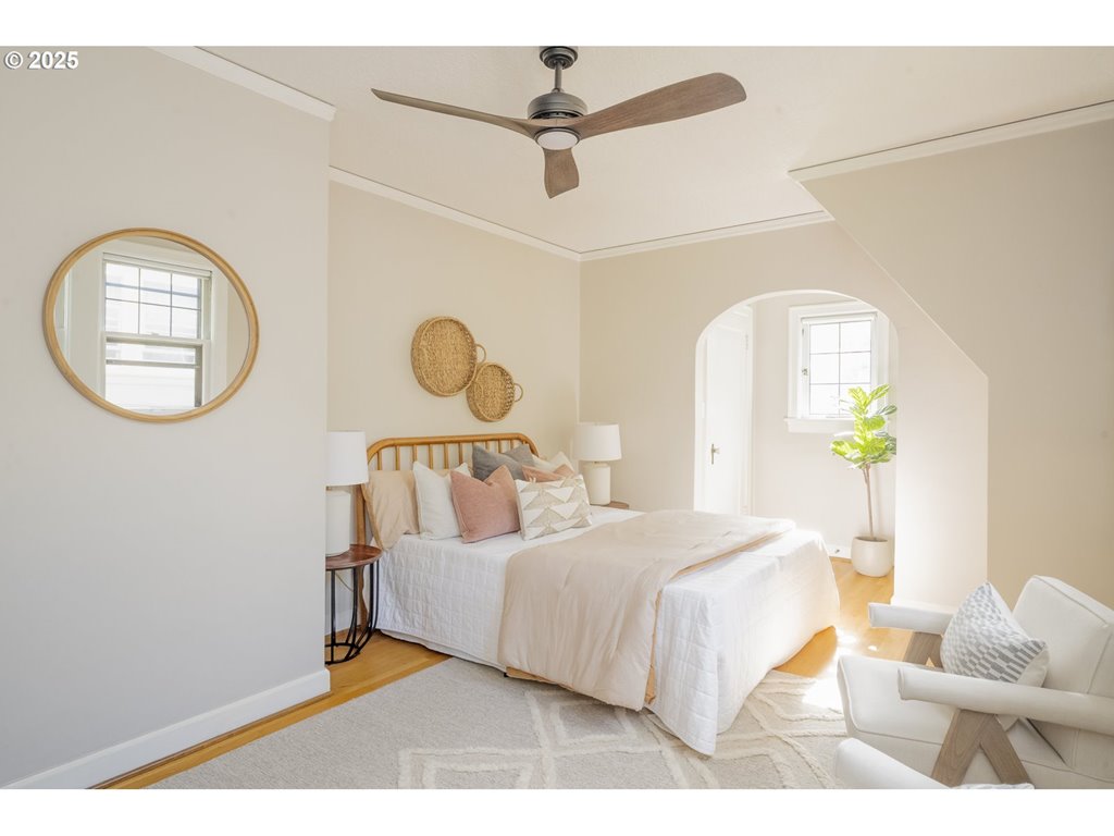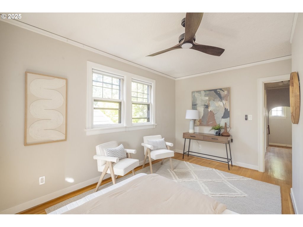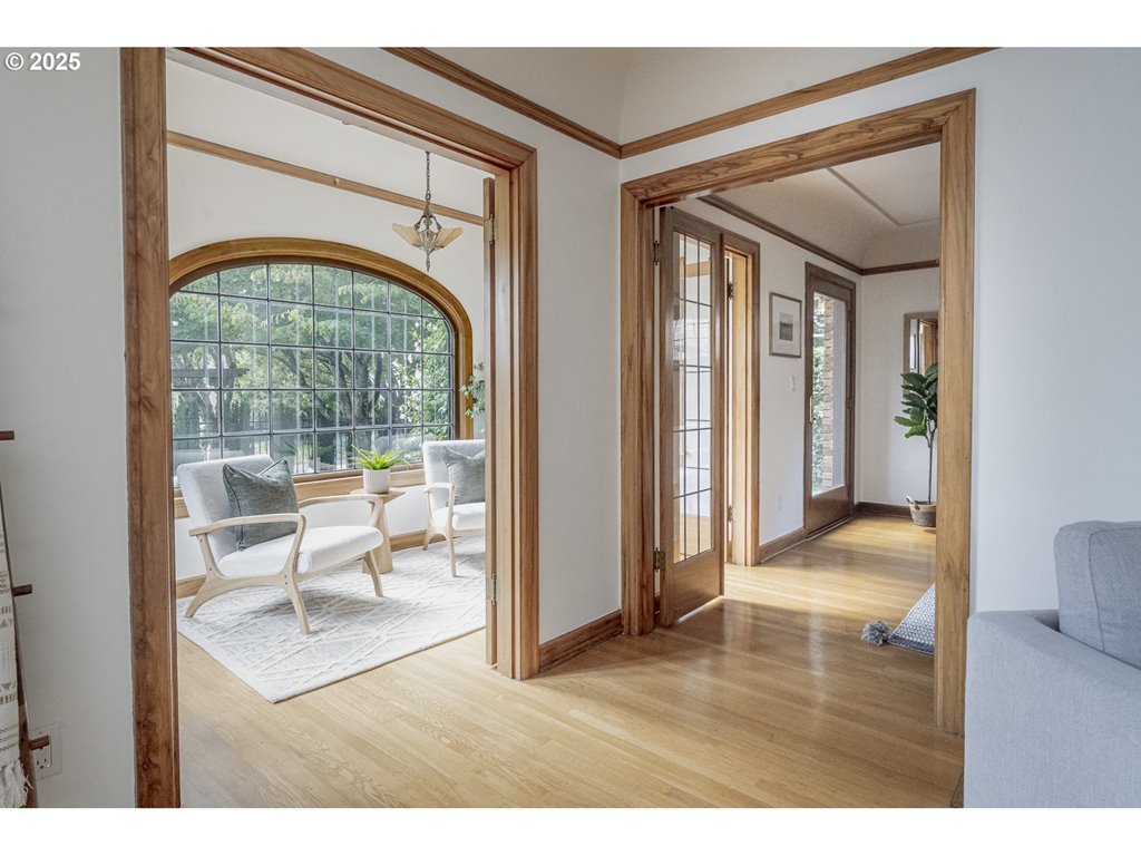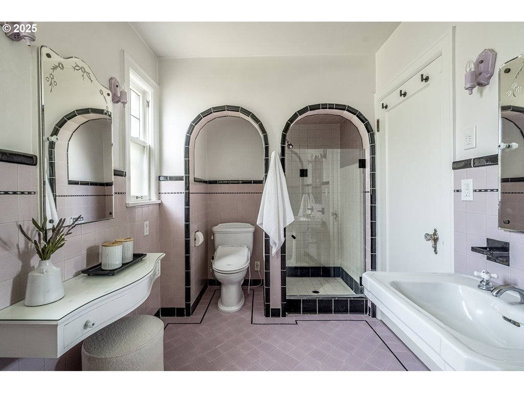 Nestled on a quiet, tree-lined corner lot in one of Portland’s most coveted neighborhoods, this enchanting English Tudor blends timeless elegance with thoughtful modern updates—just steps from the vibrant Hawthorne and Division corridors. Phenomenal natural light pours through leaded glass windows in the expansive living room and sunroom, filling the home with warmth. The main floor offers a graceful layout with a formal dining room, sunroom, kitchen with a cozy breakfast nook, and an office space. Upstairs you’ll find three generously sized bedrooms, including the primary with two large walk-in closets and a bathroom dripping with vintage charm. The fully renovated lower level adds a large family room with fireplace, two additional bedrooms (one non-conforming) plus bonus room, a stunning new bathroom with heated floors, kitchenette, laundry room, and new windows—perfect as a private guest retreat, or flexible living space. Additional updates include new PEX plumbing, fresh interior paint, updated light fixtures, and a finished flex space upstairs with cork flooring. Step outside and enjoy a sunset-facing patio overlooking lush gardens and a serene water feature. Hard to find detached two-car garage for extra storage. Located on a low-traffic greenbelt, this friendly community hosts an annual block party and is minutes from parks, and some of Portland’s best shopping and dining. [Home Energy Score = 4. HES Report at rpt.greenbuildingregistry.com/hes/OR10193570]